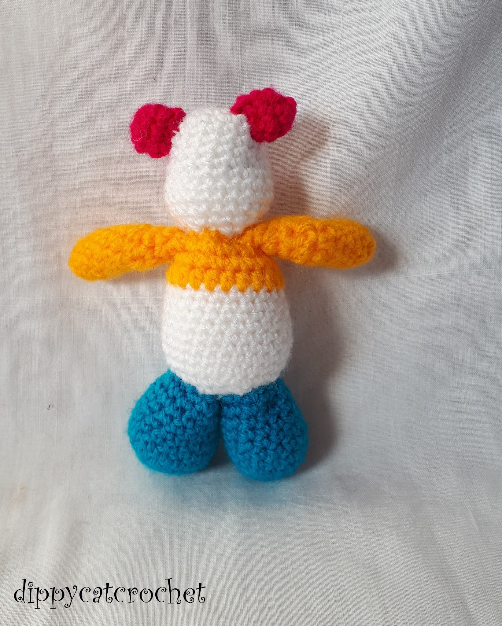 Round 12: sc2tog, sc2, hdc3, sc3,sc2tog, sc12 (22sts)
